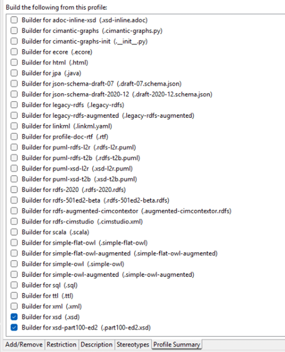 CIMConteXtor is a good alternative to CIMTool for those who don’t want to leave Enterprise Architect while creating their profiles. The schemas it creates conform to the IEC standards for XSDs and the IEC draft standard for JSON Schema. The developers of CIMConteXtor have been working together with the CIMTool team to ensure both tools remain in lockstep with the draft standard for JSON Schema. Its graphical profile view can be appealing to those who prefer a visual representation of the schema.