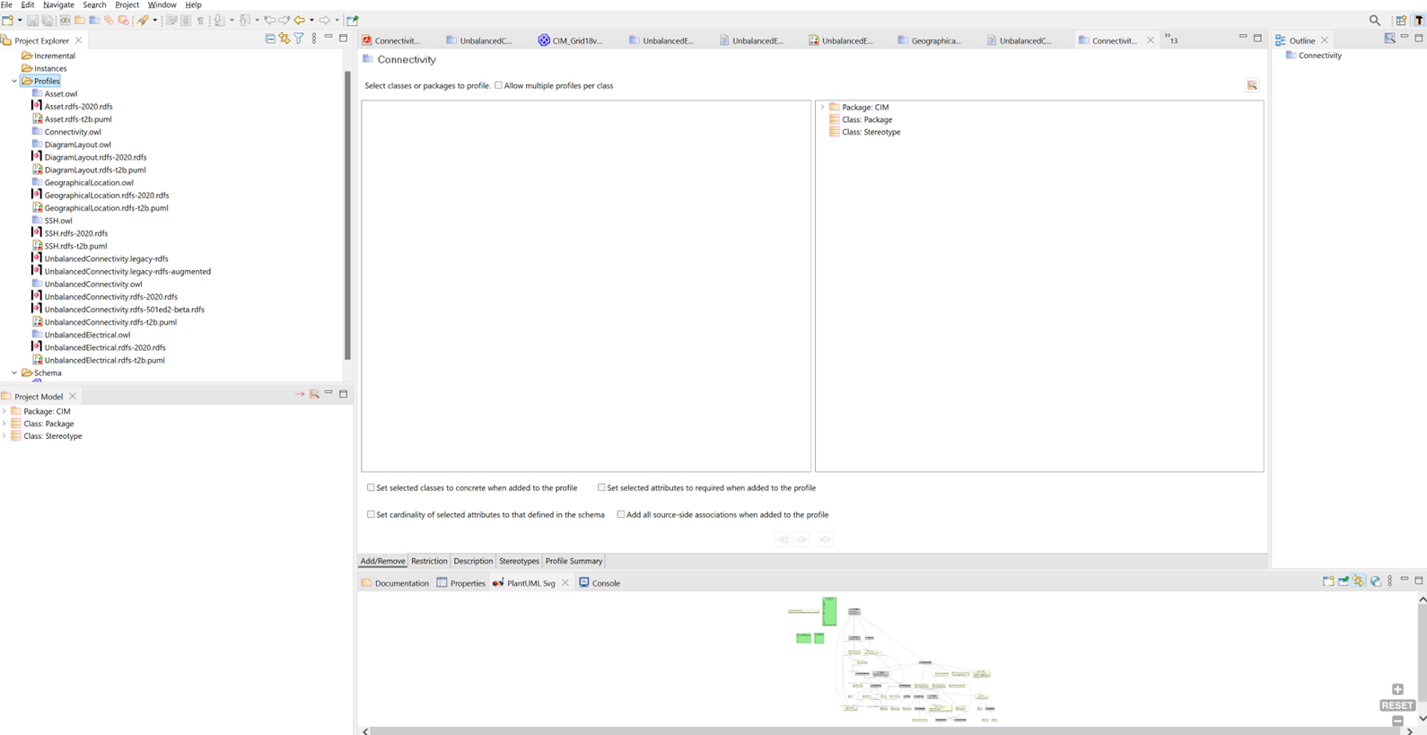 Once a CIMTool project has been created using the CIM18 schema, a new profile can be created that will define the subset of the CIM that will be used for this grid model data management interface.